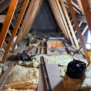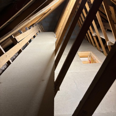 Imagine turning an unused loft into a safe, organised, and practical storage space and all in under a day. That’s exactly what we did last week in Branston, near Burton on Trent in Staffordshire. By raising the joists for better insulation, installing clean new durable boards, and adding shelving for extra storage, a fold-down wooden ladder, and a new loft hatch, we transformed the loft space completely into a usable storage space.